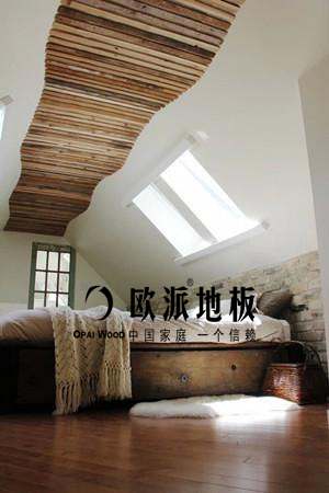 回憶總是比較美的。兒時的大宅房總是令人向往。泥土壘的墻,木質的屋頂構造,紅瓦鋪頂,冬暖夏涼,好不愜意。買不起大別墅,買一套帶閣樓的房子也是很不錯的選擇,然后按兒時的回憶鋪上木質的吊頂,也算是圓了一個夢。木地板作為現今流行的裝飾新貴,不僅僅是用在地面鋪設,用在閣樓的吊頂,也別有一番風味。