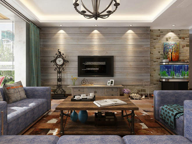 淺色的木地板背景墻,加上同一色系的電視柜,還有木質的茶幾。給人來自大自然的氣息。
